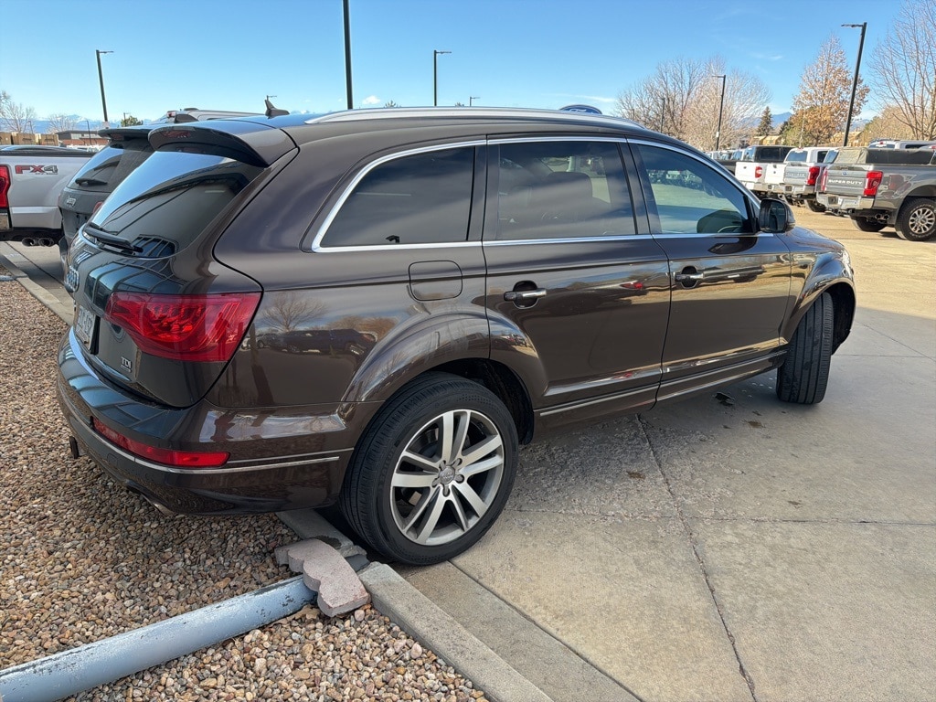 Recent Arrival at Mike Maroone Ford! FREE DELIVERY ANYWHERE IN COLORADO, VEHICLE OVERVIEW Year / Model: 2011 Audi Q7 Trim: 3.0 TDI Premium VIN: WA1VMBFE4BD002767 Engine: 3.0L V6 Turbo-Diesel Transmission: 8-Speed Automatic with Tiptronic Drivetrain: quattro All-Wheel Drive Exterior Color: Espresso Interior: Leather Seating Surfaces, POWERTRAIN & MECHANICAL 3.0L V6 Turbo-Diesel Engine 8-Speed Automatic Transmission with Tiptronic quattro All-Wheel Drive 3.27 Axle Ratio, PACKAGES Technology Package Audi Navigation Plus Rearview Camera Audi Parking System Plus (Front & Rear Sensors) Advanced Key (Keyless Entry & Start), Warm Weather Package 4-Zone Automatic Climate Control Power Sunshade for Rear Doors & Tailgate, EXTERIOR Adaptive Xenon Plus Headlights with LED Daytime Running Lights LED Taillights Panoramic Sunroof Power Tailgate Auto-Dimming Power-Folding Exterior Mirrors 20" 10-Spoke V-Design Aluminum Alloy Wheels 275/45R20 All-Season Tires Roof Rails, INTERIOR & COMFORT Leather Seating Surfaces 6-Seat Configuration Heated Front Bucket Seats Memory Driver Seat & Steering Wheel Power Adjustable Steering Column 4-Zone Automatic Climate Control AM/FM In-Dash CD Player Radio HD Radio, TECHNOLOGY & INFOTAINMENT Audi Navigation Plus HD Radio Rearview Camera Bluetooth Connectivity, SAFETY & DRIVER ASSIST Audi Side Assist Advanced Airbag System Electronic Stability Control, ADDITIONAL FEATURES Front License Plate Holder, 6-Step Heated Front Bucket Seats, ABS brakes, Alloy wheels, AM/FM radio: SIRIUS, Compass, Electronic Stability Control, Front dual zone A/C, Heated door mirrors, Heated front seats, Illuminated entry, Low tire pressure warning, Power Liftgate, Remote keyless entry, Traction control. Odometer is 1064 miles below market average! Brown 2011 Audi Q7 3.0 TDI Prestige quattro 4D Sport Utility 3.0L V6 TDI DOHC 8-Speed Automatic with Tiptronic quattro