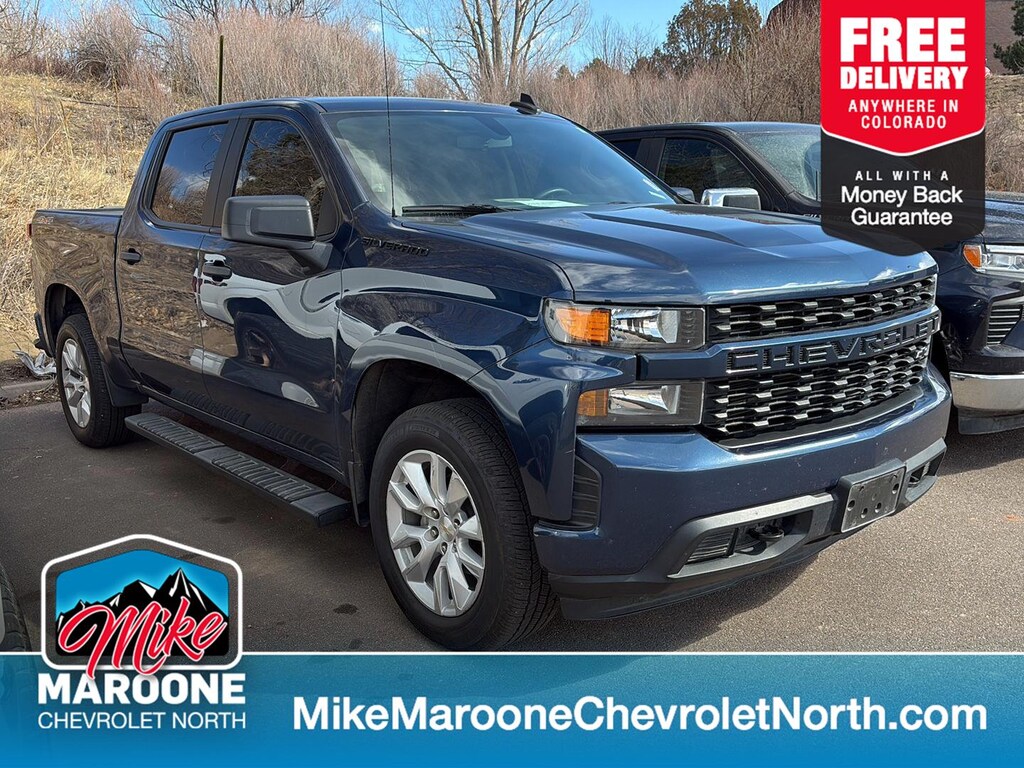 This 2021 Chevrolet Silverado 1500 Custom, has a Northsky Blue Metallic exterior and Jet Black interior color with only 62,460 miles. Stock Number N269089. You can connect with us by calling (719) 249-2703. No Accidents!