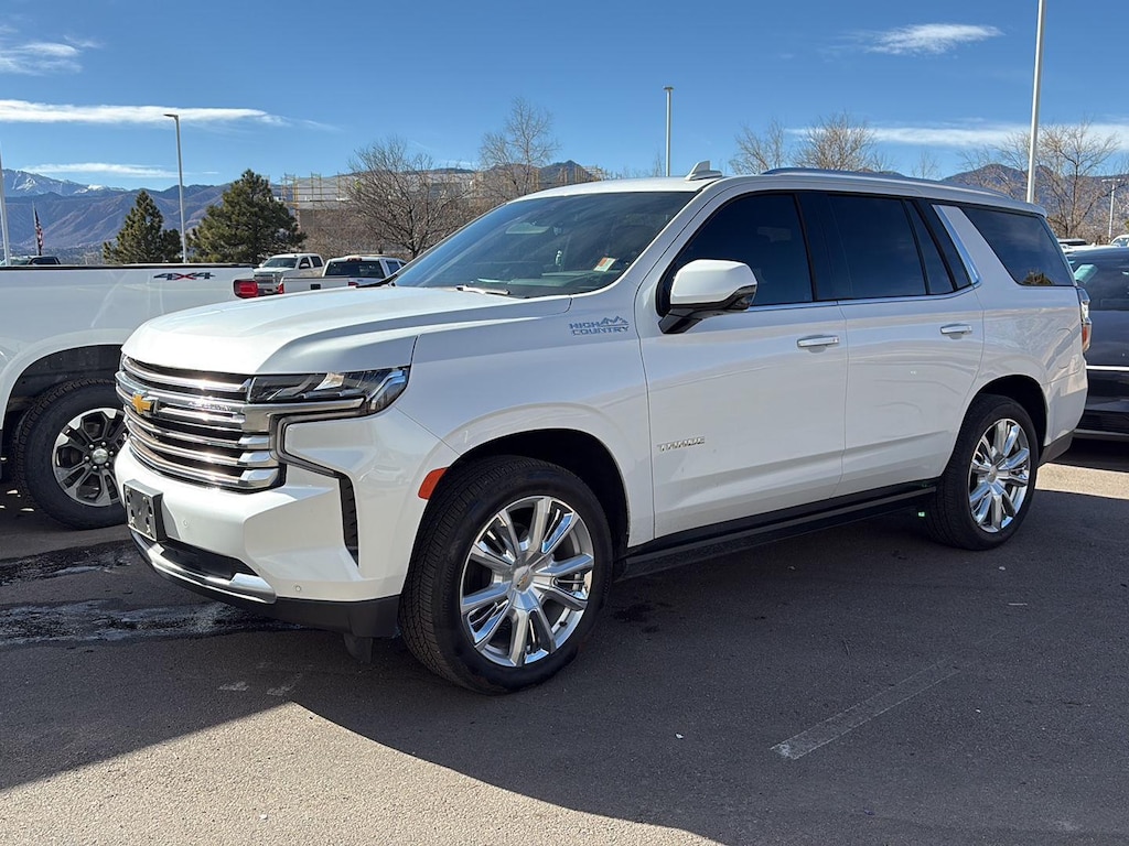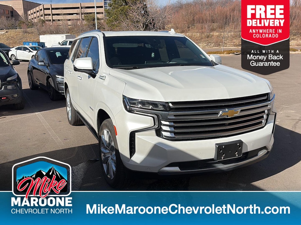 This 2024 Chevrolet Tahoe High Country, has a Iridescent Pearl Tricoat exterior and Jet Black interior color with only 13,374 miles. Stock Number N258656. You can connect with us by calling (719) 249-2703. One Owner! Max Trailering PackageExtra Capacity Cooling SystemAdvanced Trailering PackageIntegrated Trailer Brake ControllerHitch View with Pan/zoom Image AdjustmentSmart Trailer Integration IndicatorTrailer Side Blind Zone AlertPreferred Equipment Group 3LZMemory SettingsFront High-Back Reclining Bucket Seats3rd Row 60/40 Power-Folding Split-Bench SeatPower Release 2nd Row Bucket SeatsDriver and Front Outboard Passenger AirbagsChrome Door Handles with Body-Color StripColor-Keyed Carpeting Floor Covering1st and 2nd Row Color-Keyed Carpeted Floor MatsRemote StartBright Front and Rear Door Sill PlatesRear Camera Mirror WasherFloor ConsoleInside Rearview Auo-Dimming Rear Camera MirrorOutside Heated Power-Adjustable MirrorsSafety Alert SeatChevrolet Infotainment 3 Premium System RadioHill Descent ControlWireless ChargingHeated 2nd Row Outboard SeatsHeated Steering WheelAdaptive Cruise Control6.2L EcoTec3 V8 EngineDual Exhaust SystemPower Tilt and Telescopic Steering ColumnWrapped Steering Wheel2-Speed Active Electronic Autotrac Transfer CaseWheels: 22" X 9" Sterling Silver Premium PaintedPerforated Leather Seat TrimLED Daytime Running LampsHands-Free Rear Power Programmable LiftgateSiriusXM with 360LEnhanced Driver Information CenterRear Cross Traffic AlertUniversal Home RemoteEnhanced Automatic Emergency BrakingLane Change Alert with Side Blind Zone AlertRear Pedestrian AlertBose 10-Speaker Centerpoint Surround Audio System FeatureHD Surround Vision15" Diagonal Multi-Color Head-Up Display275/50R22SL AS BW TiresMagnetic Ride Control SuspensionHigh Country Deluxe ($4,210 value)Power-Retractable Assist StepsDual-Pane Power Panoramic SunroofAir Ride Adaptive Suspension Safety and Security Forward collision mitigation - Forward thinking. You look away for just a second and suddenly the vehicle in front of you has stopped. That's when the forward collision mitigation system comes to life. When it senses an impending impact, it will activate a combination of features to help prevent or reduce the severity of an accident. Forward collision mitigation is always looking ahead. Pedestrian impact prevention - An extra step toward safety. Pedestrians don't always stop, look, and listen, but with Pedestrian Impact Prevention, your vehicle is equipped to better see them and avoid them. This system constantly monitors the road ahead to identify and track pedestrians. It projects that image to an interior display screen, AND should an impact become likely, Pedestrian impact prevention takes steps to avoid a collision. Rear camera with washer - Watching your back! The rear camera helps you see obstacles and hazards you otherwise couldn't by showing enhanced images of what is behind you. Even if there are sloppy conditions, the washer keeps the camera's view clean. Rear camera with washer is an extra set of eyes that's both convenient and safeTechnology and Telematics Apple CarPlay/Android Auto smart device wireless mirroring Mobile hotspot - WiFi on the fly. Connect your devices to the Internet through your vehicles private mobile hotspot and take the internet wherever your journey takes you, without eating up your data allowance. Find the hotspot with mobile hotspot. At Mike Maroone Chevrolet North, were here to Serve you! Our staff is 100% dedicated to customer satisfaction and we understand that you need clear, transparent information throughout the car buying process. With our live market pricing philosophy, we offer the right cars at the right price, and the transparency to back it up! FINANCING OPTIONS: Take advantage of our attractive low-rate financing options. Our access to various Credit Unions and National Banks can provide financing for most credit levels. We can tailor a finance package to fit your needs. To get started, complete ou