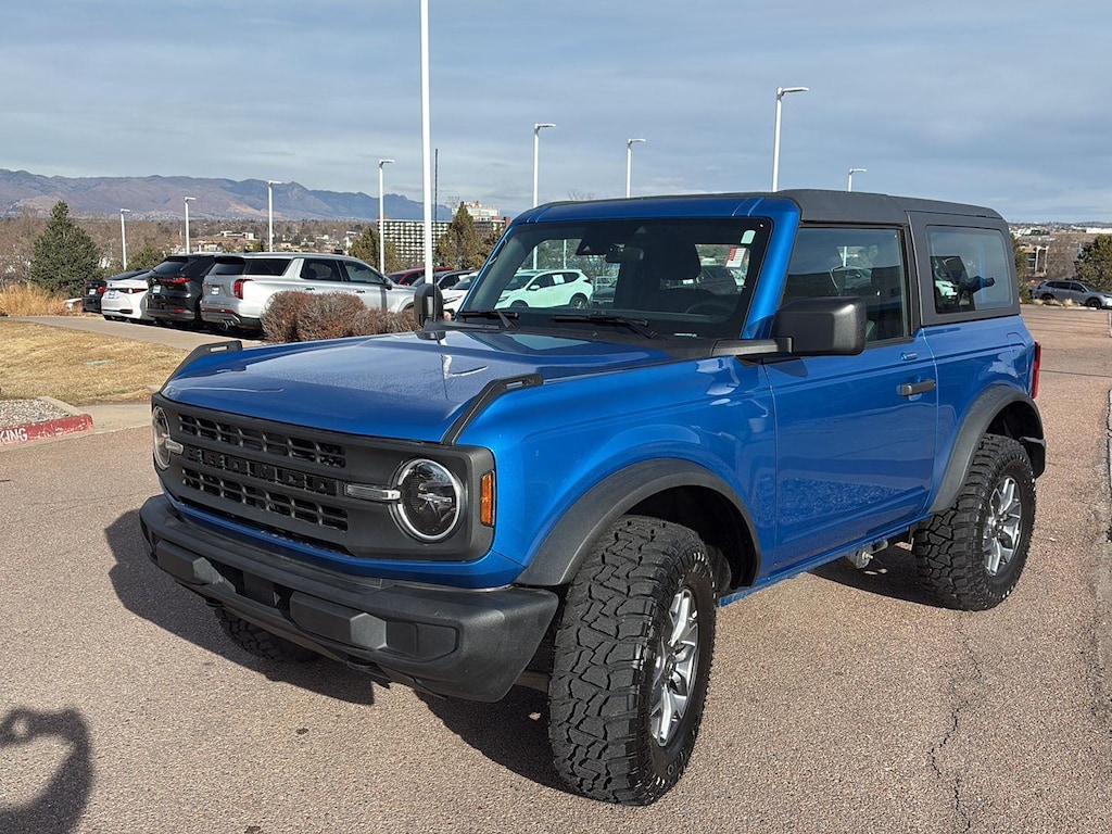 This <b> 2023 Ford Bronco Base</b> has a Velocity Blue exterior and Dark Space Gray w/ Black Onyx interior color with only 35,773 miles. Stock Number KHB25560. You can connect