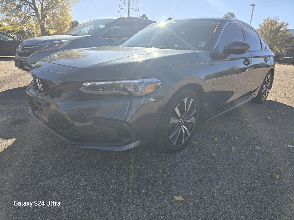 This 2022 Honda Civic Hatchback EX-L, has a Meteorite Gray Metallic exterior and Black interior color with only 42,565 miles. Stock Number NE013807. You can connect