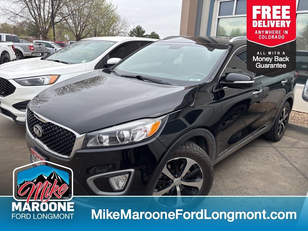 FREE DELIVERY ANYWHERE IN COLORADO, 2017 Kia Sorento EX AWD, 3.3L Gas Direct Injection (GDI) V6 Engine, 6-Speed Automatic Transmission, All-Wheel Drive w/ Locking Center Differential, Ebony Black Exterior, Stone Beige Leather Interior, 18" Alloy Wheels, Dual-Zone Automatic Climate Control, UVO 7" Touchscreen Infotainment System, Apple CarPlay & Android Auto, Bluetooth Wireless Technology, SiriusXM Radio (3-Month Subscription), Leather Seat Trim (1st & 2nd Rows), Power Driver Seat w/ Lumbar Support, Power Front Passenger Seat, Heated Front Seats, Push Button Start w/ Smart Key, Leather-Wrapped Steering Wheel & Shift Knob, 4.2" TFT LCD Instrument Cluster, Blind Spot Detection (BSD), Rear Cross Traffic Alert (RCTA), Rear Parking Assist System (RPAS), Rearview Camera, Auto-Dimming Rearview Mirror, 2nd Row Window Sun Shades, Fog Lamps, Heated Outside Mirrors w/ Turn Signals, Privacy Glass, Roof Rails, Advanced Airbag System (Front, Side & Curtain), Electronic Stability Control (ESC), Traction Control System (TCS), ABS Brakes, Hill-Start Assist Control (HAC), Tire Pressure Monitoring System (TPMS), 21 MPG Combined Fuel Economy. Ebony Black 2017 Kia Sorento EX 4D Sport Utility 3.3L DOHC 6-Speed Automatic with Sportmatic AWD