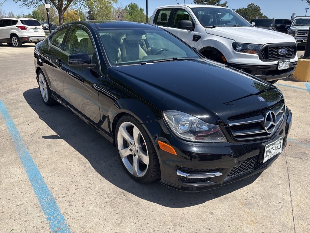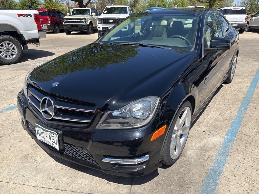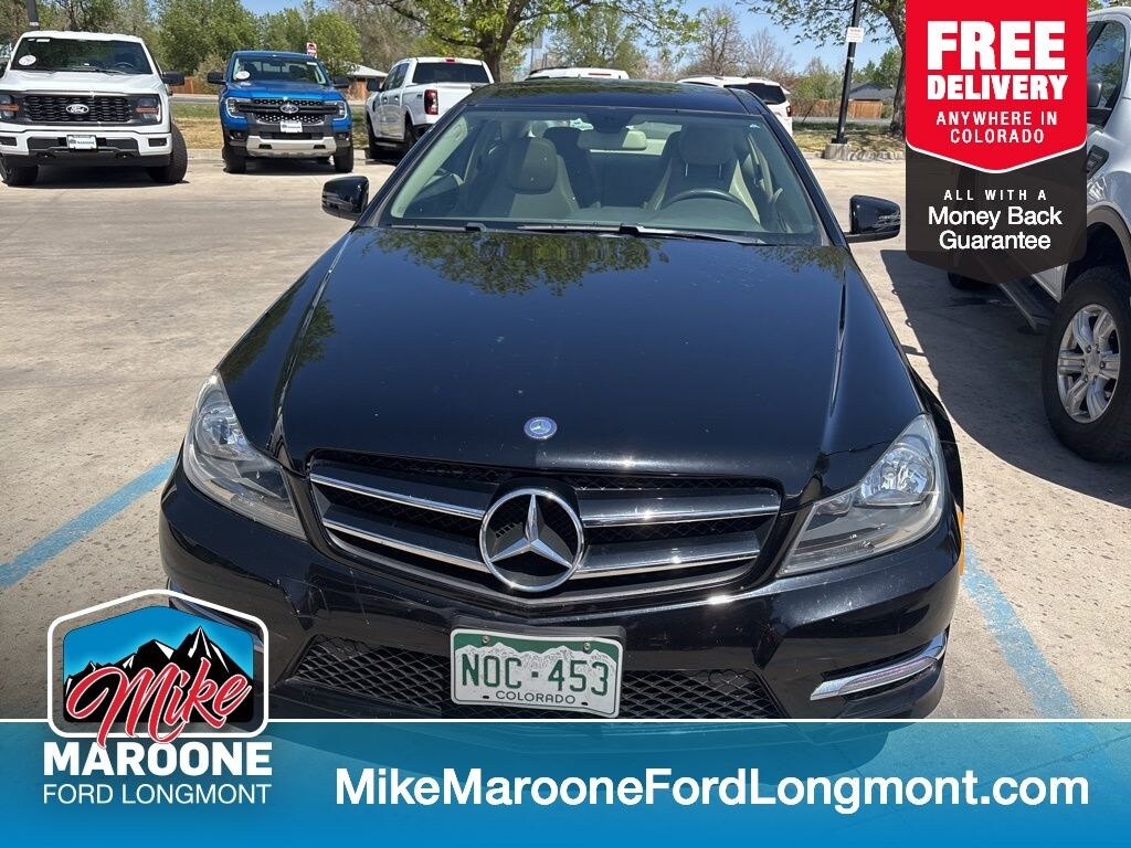FREE DELIVERY ANYWHERE IN COLORADO, Sport 4MATIC trim, 3.5L V6 engine, 7-speed automatic transmission with Tiptronic, all-wheel drive, Black exterior, Black interior, heated front bucket seats, MB-Tex upholstery, sport suspension, sport steering wheel, 18-inch alloy wheels, all-season tires, rear trunk lid spoiler, Harman/Kardon Logic 7 surround sound system, COMAND infotainment system, Bluetooth connectivity, SiriusXM satellite radio, keyless entry with push-button start (KEYLESS GO), dual-zone automatic climate control, power front seats with memory, power tilt/sliding sunroof, LED daytime running lights, automatic headlights, rain-sensing windshield wipers, rearview camera, parking sensors, cruise control, steering wheel-mounted controls, wood interior trim (Ash Olive Matte), stability control, traction control, anti-lock braking system, multiple airbags, tire pressure monitoring system. Black 2014 Mercedes-Benz C-Class C 350 Sport 4MATIC® 2D Coupe 3.5L V6 DOHC 24V 7G-TRONIC PLUS 7-Speed Automatic 4MATIC®