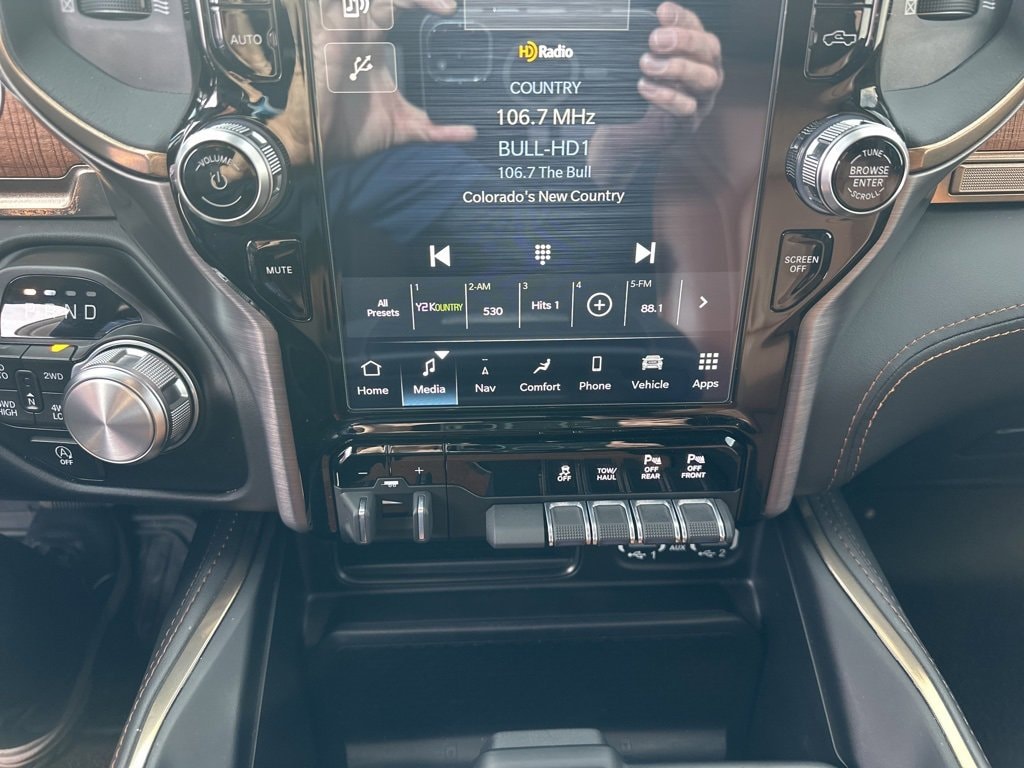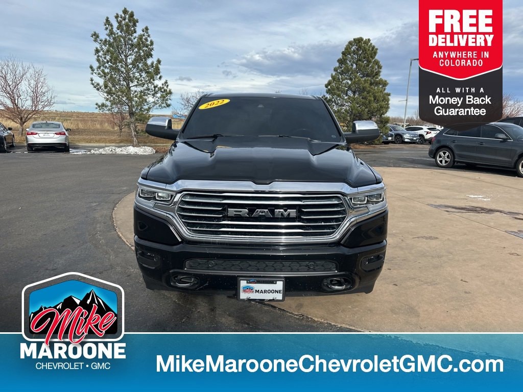 Clean CARFAX. Diamond Black Crystal Pearlcoat 2022 Ram 1500 Laramie Longhorn 4WD 8-Speed Automatic HEMI 5.7L V8 Multi Displacement VVT